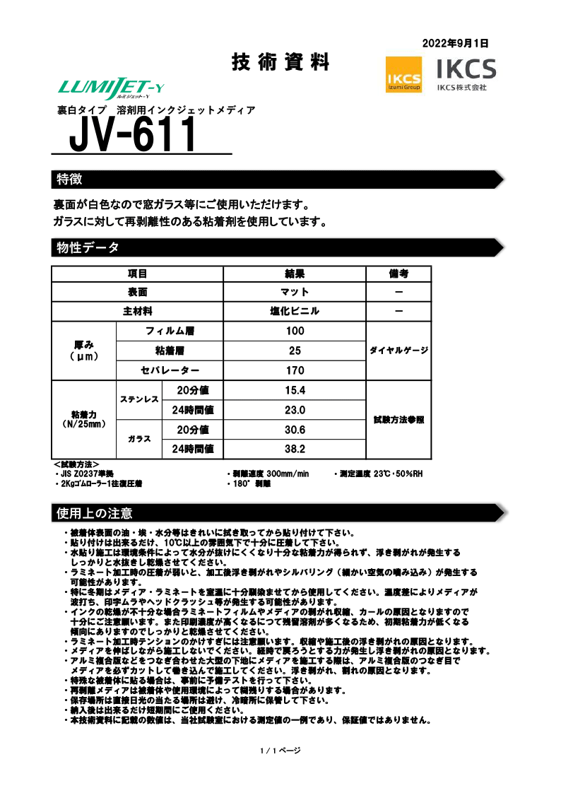 ・印刷濃度が高くなるにつれて残留溶剤が多くなるため、初期粘着力が低くなる傾向にありますのでしっかりと乾燥させてください。