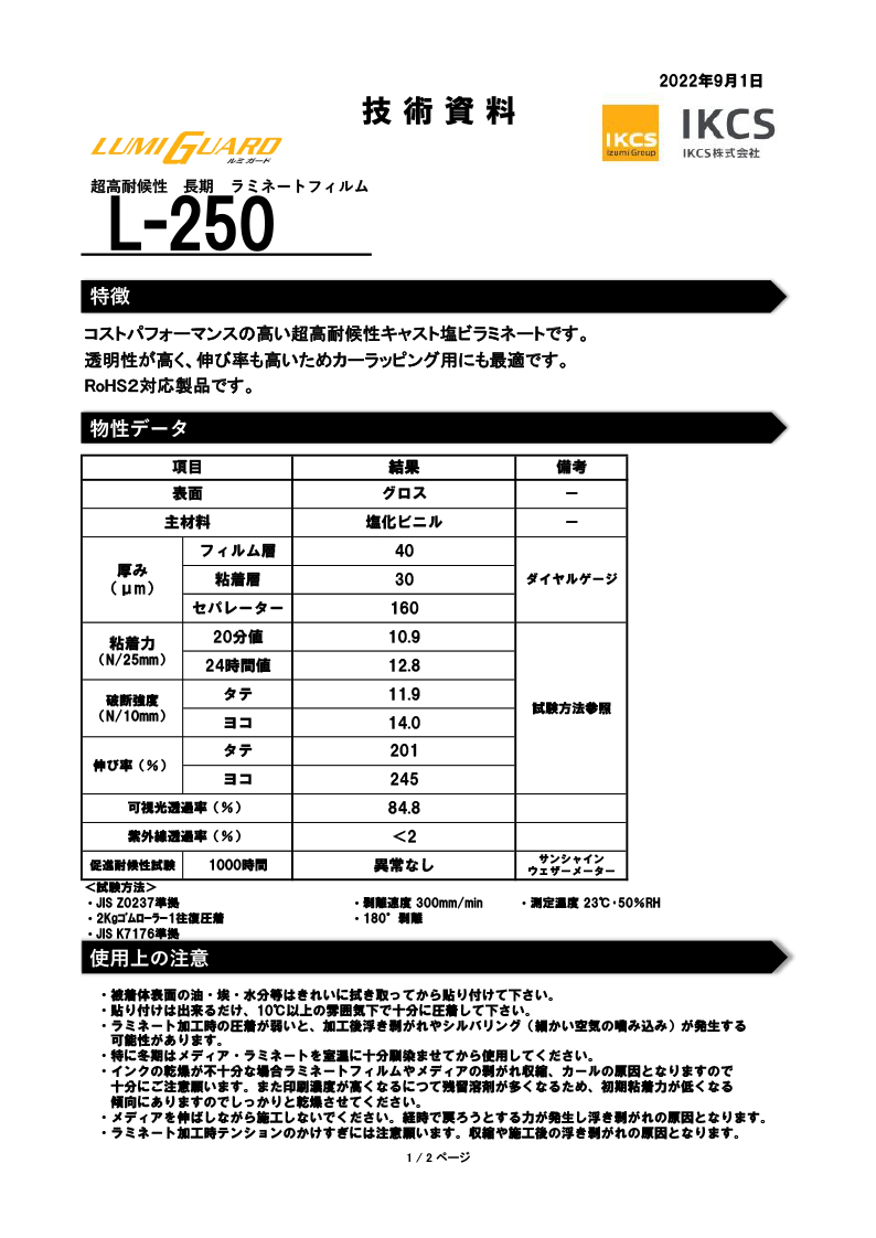 ・溶剤インクは特に十分に乾燥時間を設けてください(24時間以上推奨)。乾燥不足の場合、ラミネートや粘着剤に悪影響を及ぼす場合があります。