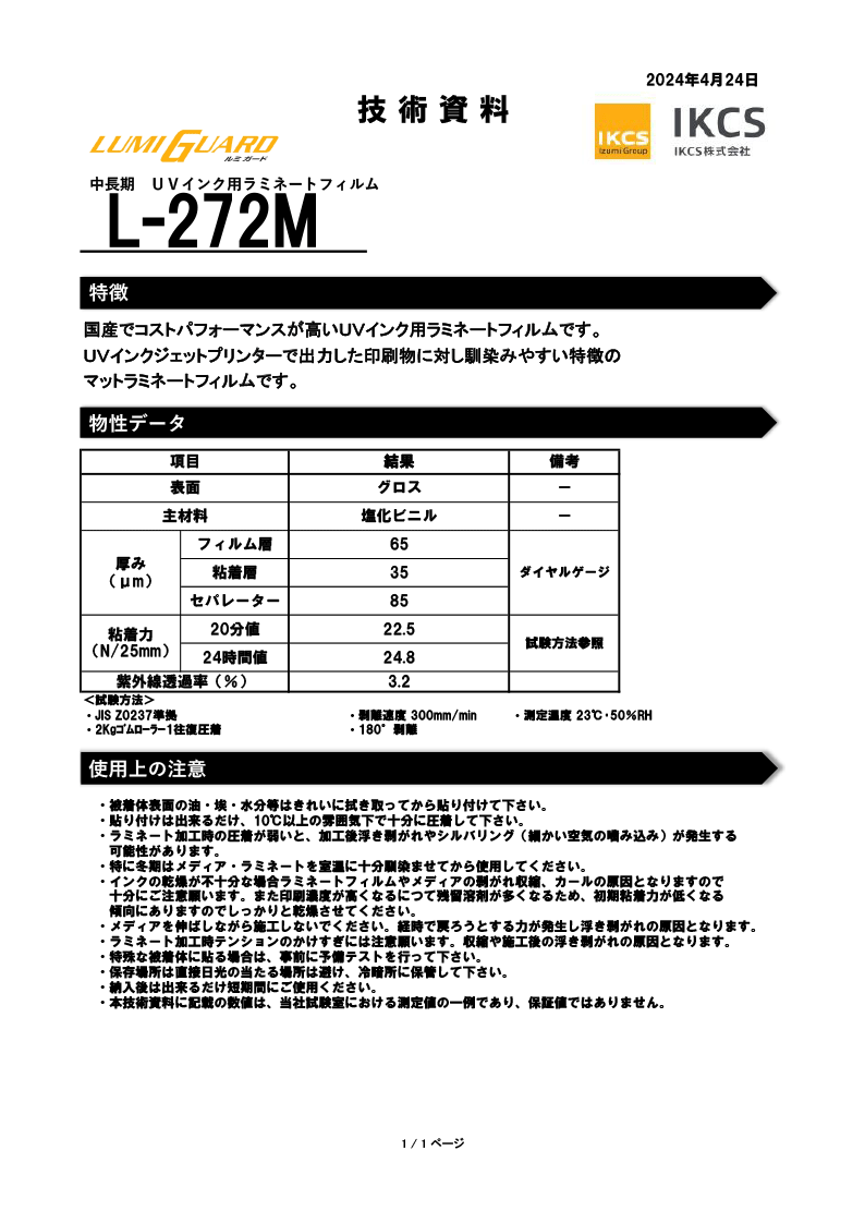 ・溶剤インクは特に十分に乾燥時間を設けてください(24時間以上推奨)。乾燥不足の場合、ラミネートや粘着剤に悪影響を及ぼす場合があります。