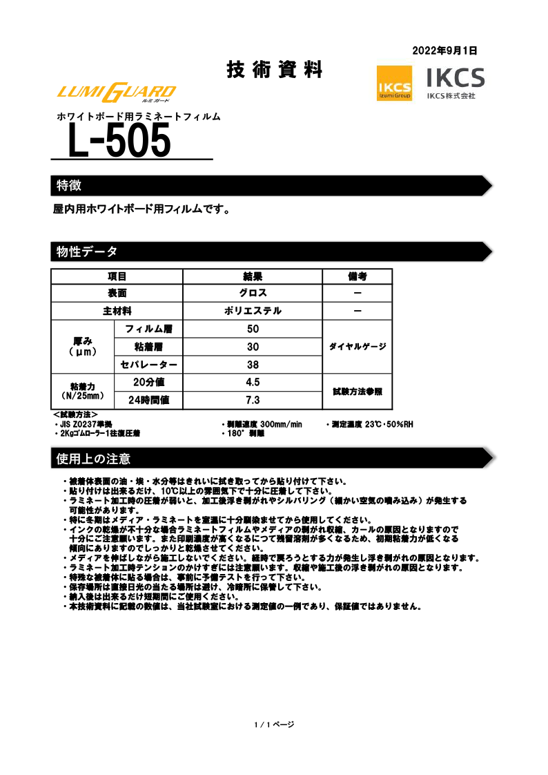 L-505 ホワイトボード用ラミネートフィルム