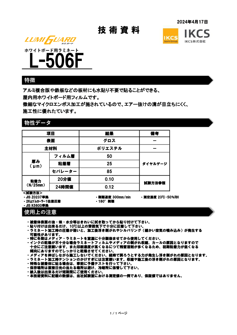 L-506F ホワイトボード用ラミネートフィルム(切売)