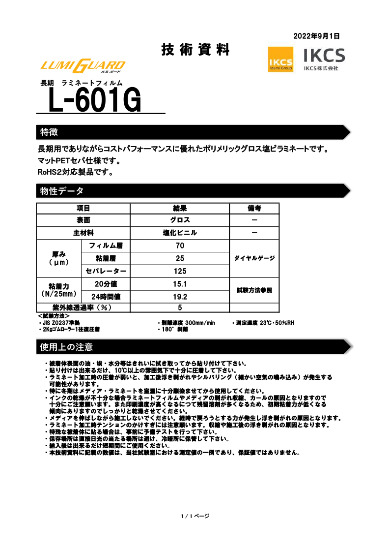 L-601G グロスラミネートフィルム(長期用)