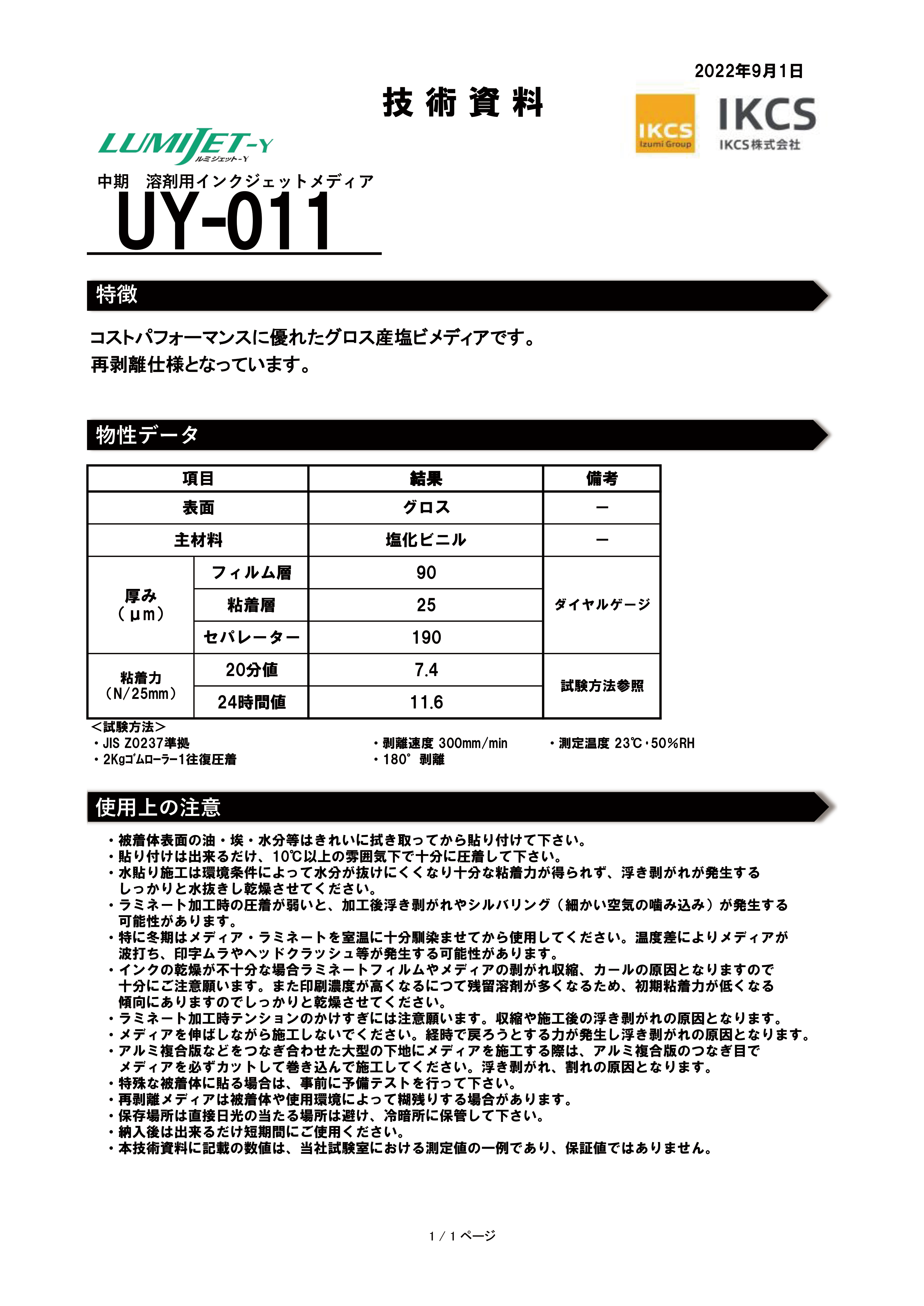 ・溶剤インクは特に十分に乾燥時間を設けてください(24時間以上推奨)。乾燥不足の場合、ラミネートや粘着剤に悪影響を及ぼす場合があります。
