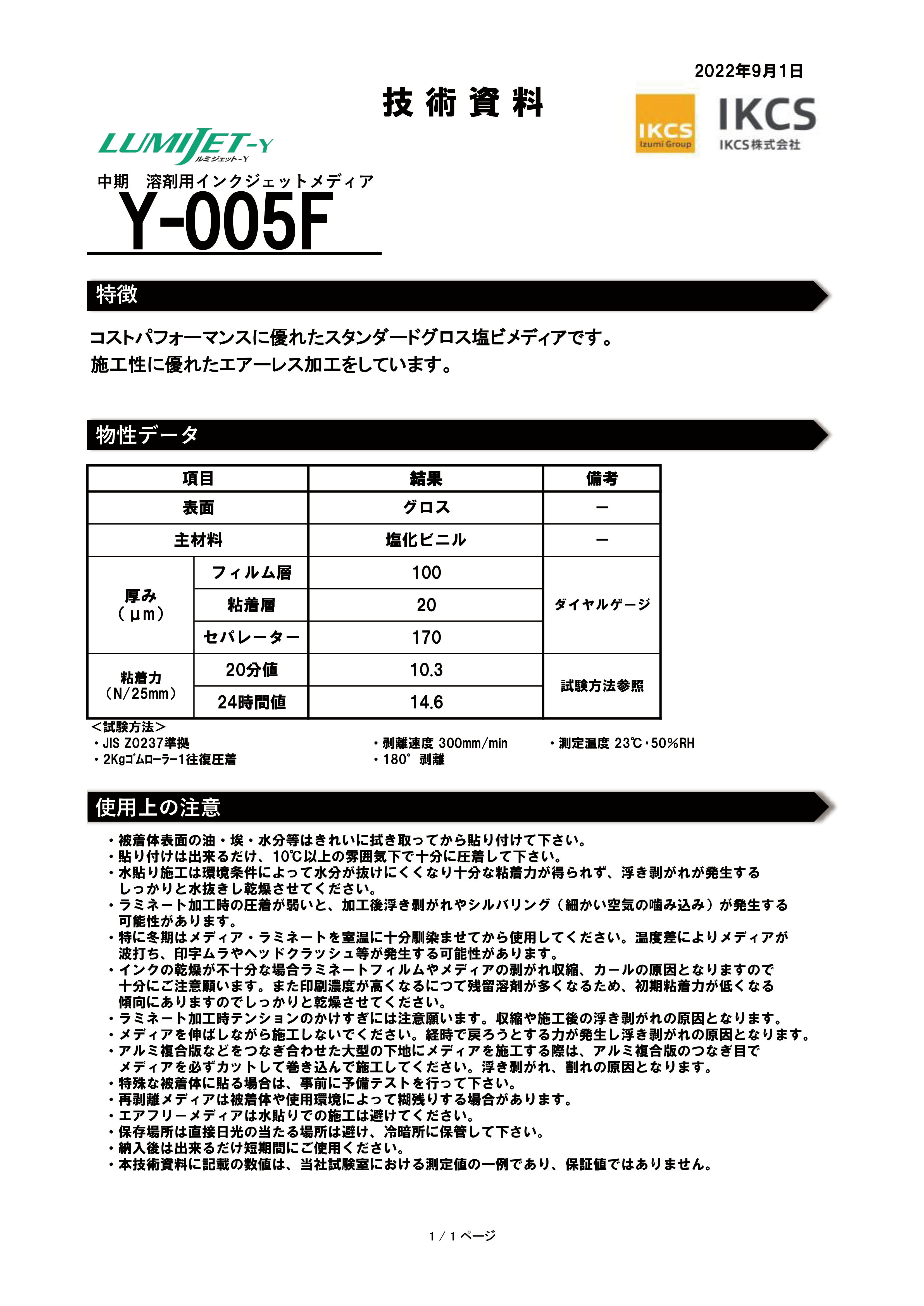 ・印刷濃度が高くなるにつれて残留溶剤が多くなるため、初期粘着力が低くなる傾向にありますのでしっかりと乾燥させてください。