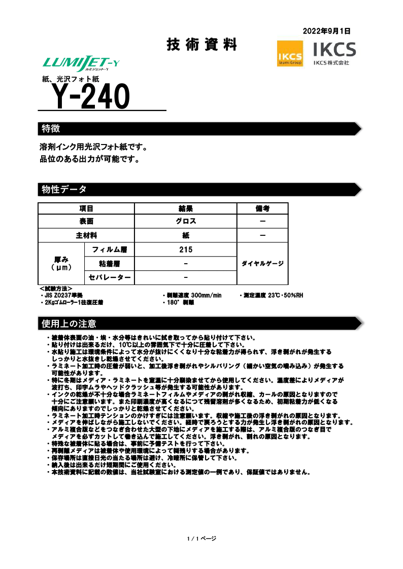 ・印刷濃度が高くなるにつれて残留溶剤が多くなるため、初期粘着力が低くなる傾向にありますのでしっかりと乾燥させてください。