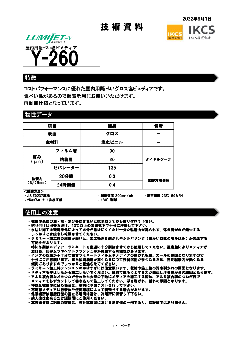 Y-260 グロス屋内用隠ぺい塩ビフィルム