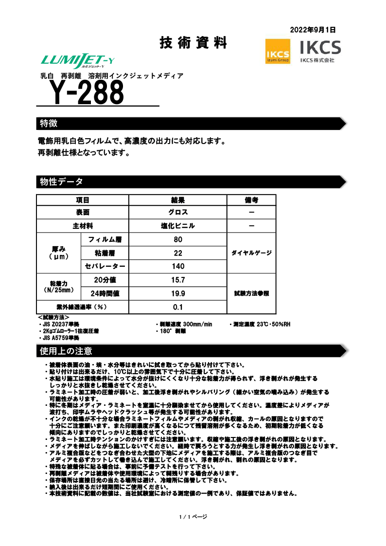 ・万一材料に起因する不具合が生じた場合、材料のみ代替提供致します。出力製品台、施工代等のクレームは負いかねますので事前の確認を十分に行ってください。