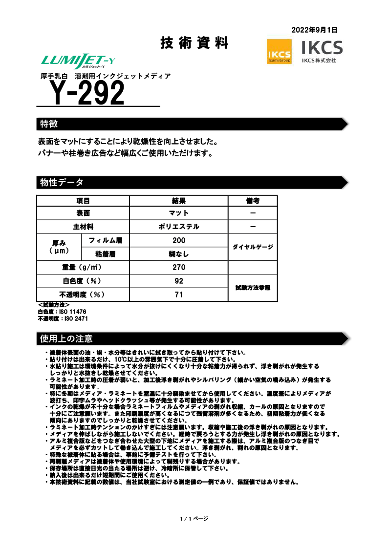 ・溶剤インクは特に十分に乾燥時間を設けてください(24時間以上推奨)。乾燥不足の場合、ラミネートや粘着剤に悪影響を及ぼす場合があります。