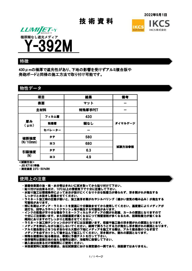 ・万一材料に起因する不具合が生じた場合、材料のみ代替提供致します。出力製品台、施工代等のクレームは負いかねますので事前の確認を十分に行ってください。